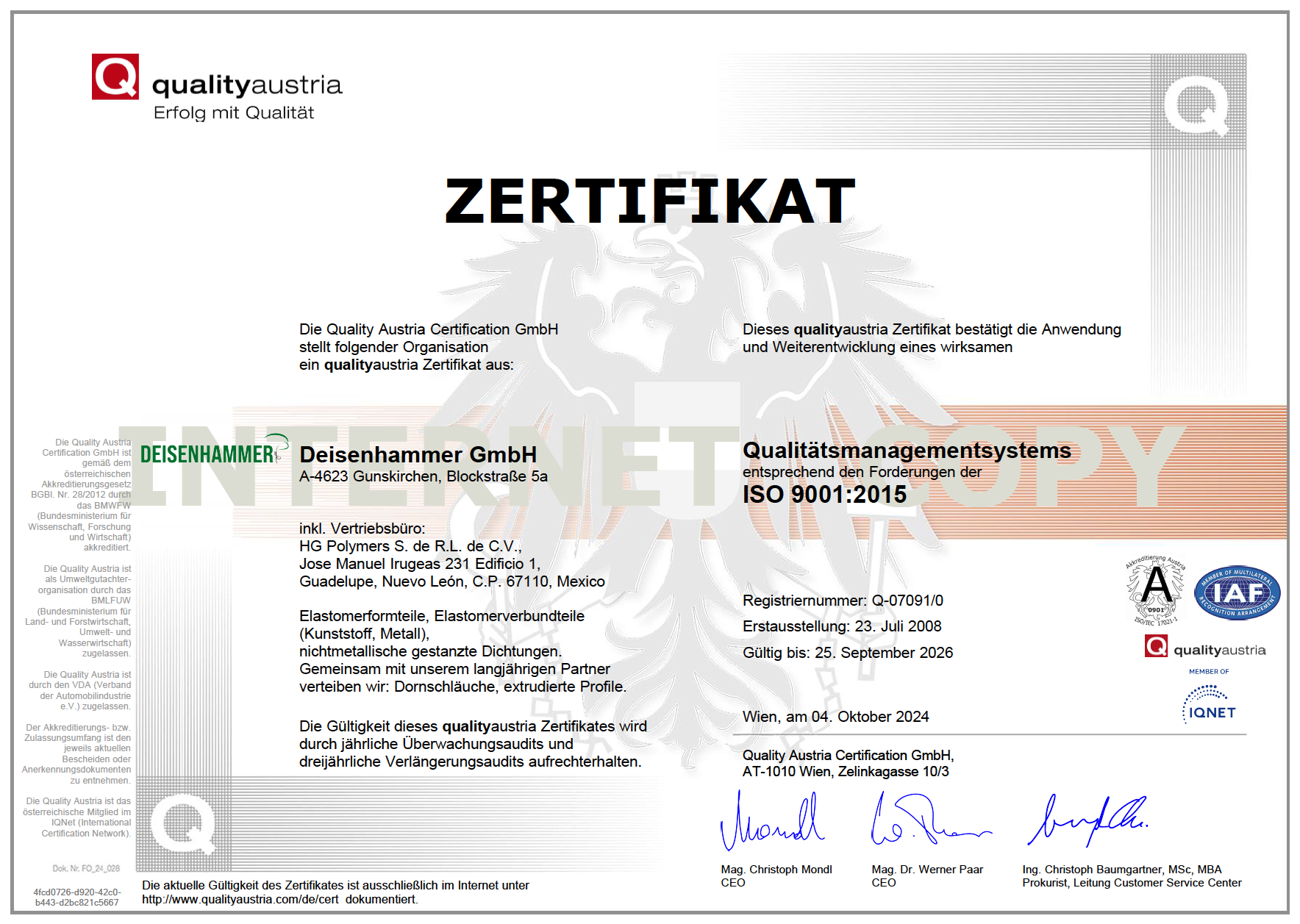 In unserem Bestreben nach Exzellenz und höchster Kundenzufriedenheit steht bei Deisenhammer das Qualitätsmanagement im Mittelpunkt unserer Unternehmensphilosophie.